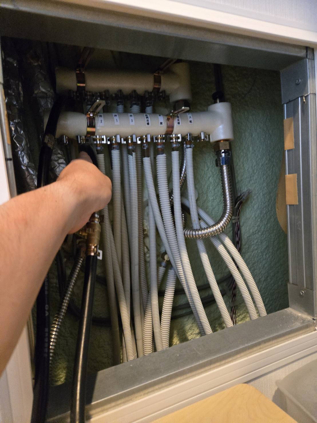 先日の暖房給湯器の交換作業の風景です。