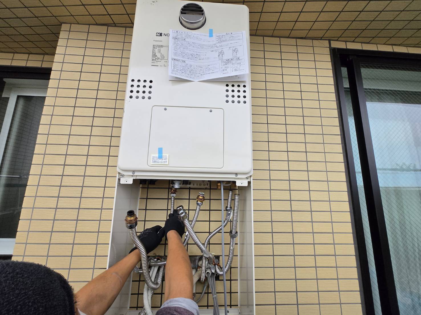 先日の暖房給湯器の交換作業の風景です。