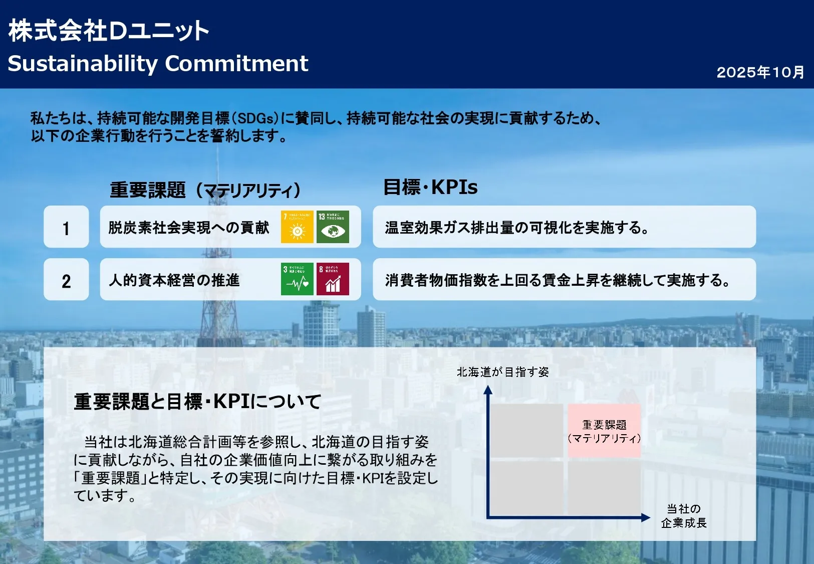上記は、当社の「SDGs宣言(サステナビリティ・コミットメント)」です。